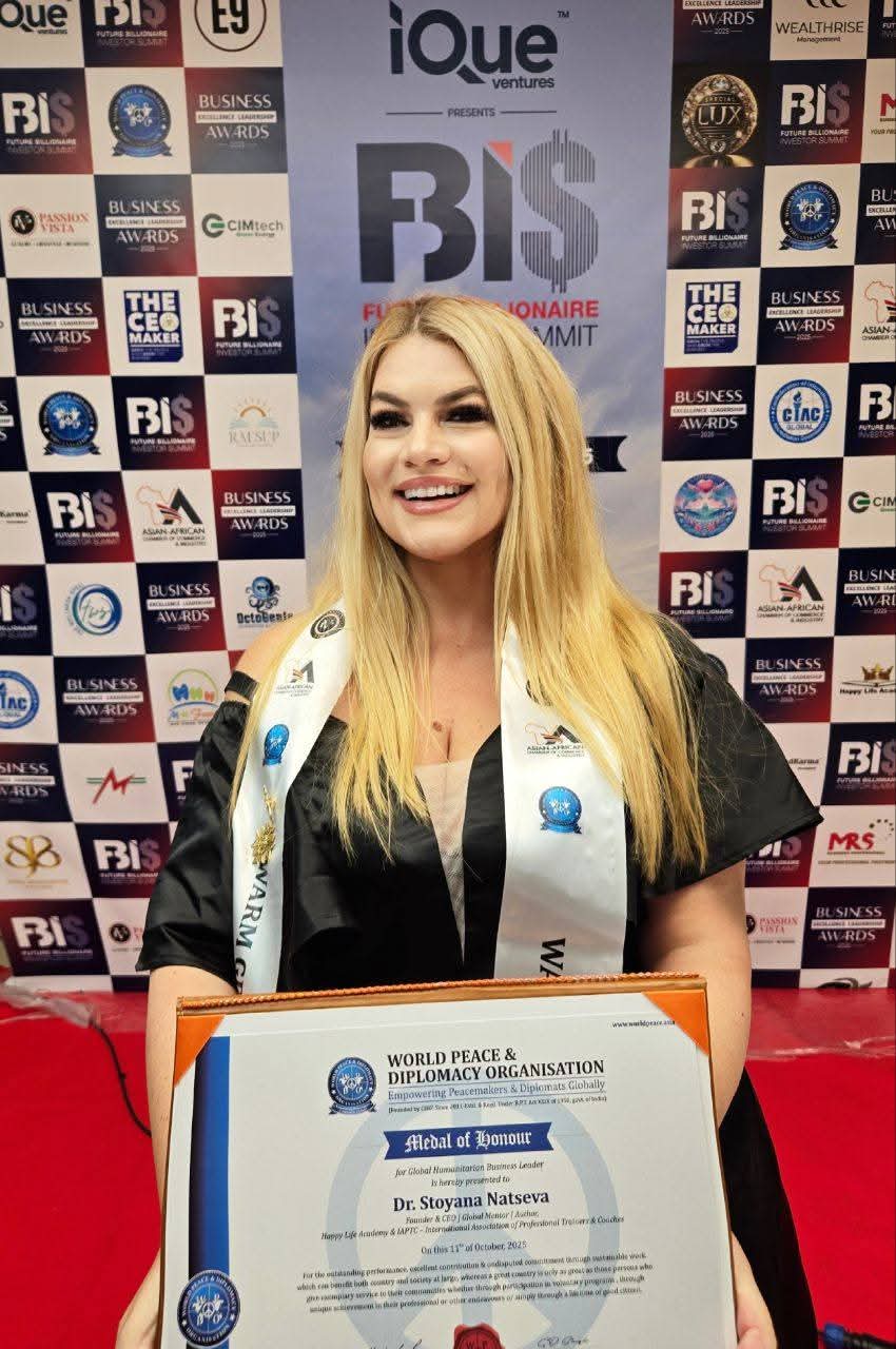 Медалът на честта от World Peace & Diplomacy Organisation е поредното международно признание за д-р Стояна Нацева – жена, която вдъхновява, обединява и изгражда бъдеще, основано на осъзнатост, любов и духовен растеж.