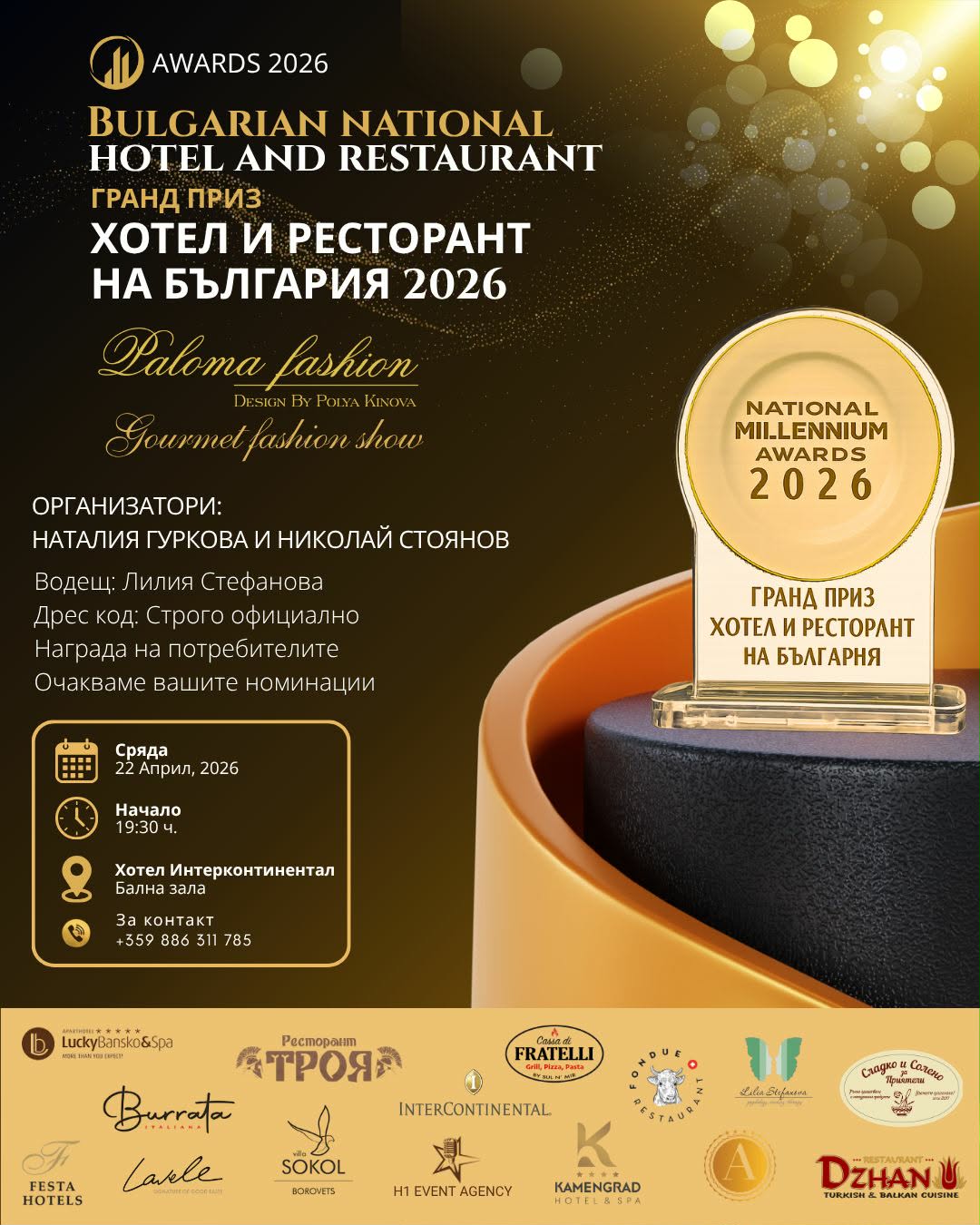 Тази пролет София ще стане свидетел на едно от най-изисканите събития, обединяващо лукса, висшата кулинария и модата. На 22 април 2026 година в балната зала на хотел Интерконтинентал ще се проведе официалната церемония по връчването на престижните награди Гранд При Хотел и Ресторант на България 2026.
