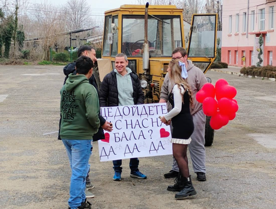 Класният ръководител на 12.Б клас в Професионалната гимназия по селско стопанство „Царица Йоанна“ днес бе поканен на абитуриентския бал с… трактор. Жълтият „Болгар“ бе докаран от зрелостник (Сергио-Ангел Найденов) на плаца пред учебната сграда, а отпред на машината бе окачена „бяла дъска“ с въпрос: „Ще дойдете ли с нас на бала?“. Трите възможни отговора бяха „Да“, „Да“ и “Да“. Главният герой в този мил жест – преподавателят Здравко Узунов – попълни правилно теста по разпореждане на дванайсетокласничка (Даря Панчева), която безкомпромисно му връчи маркера също както той го е връчвал на нея по време на изпитване. Всичко това се разигра на фона на множество балони и празнични димки в цветовете на националния трибагреник.