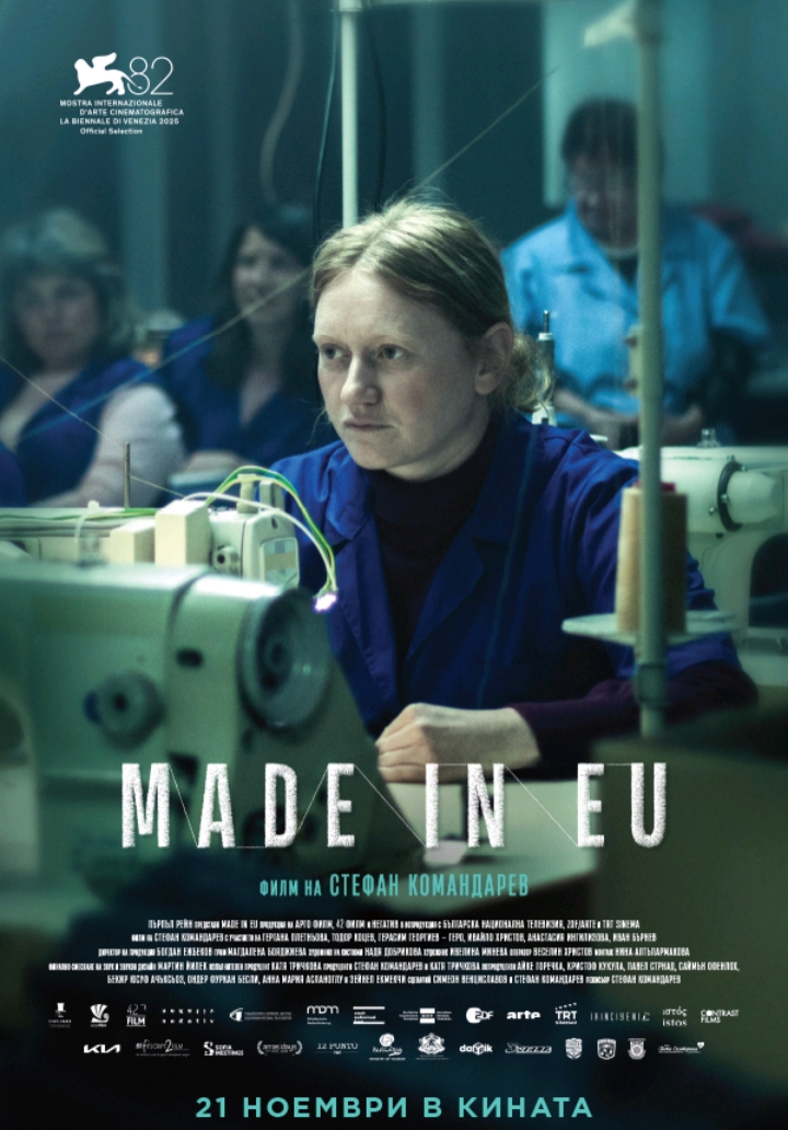 „Made in EU” разказва за шивачка в малък град и нейния син. Шивачката Ива е обвинена, че е причината за избухване на пандемия в малкия град и се превръща в изкупителна жертва, преследвана от системата, която от години трупа печалби от нейния труд. Филмът е заснет в Хасково, Димитровград, Мадан и Рудозем. Участват актьорите Гергана Плетньова, Тодор Коцев, Герасим Георгиев-Геро, Ивайло Христов, Анастасия Ингилизова, Иван Бърнев, Ованес Торосян, Мартина Пенева и др.
