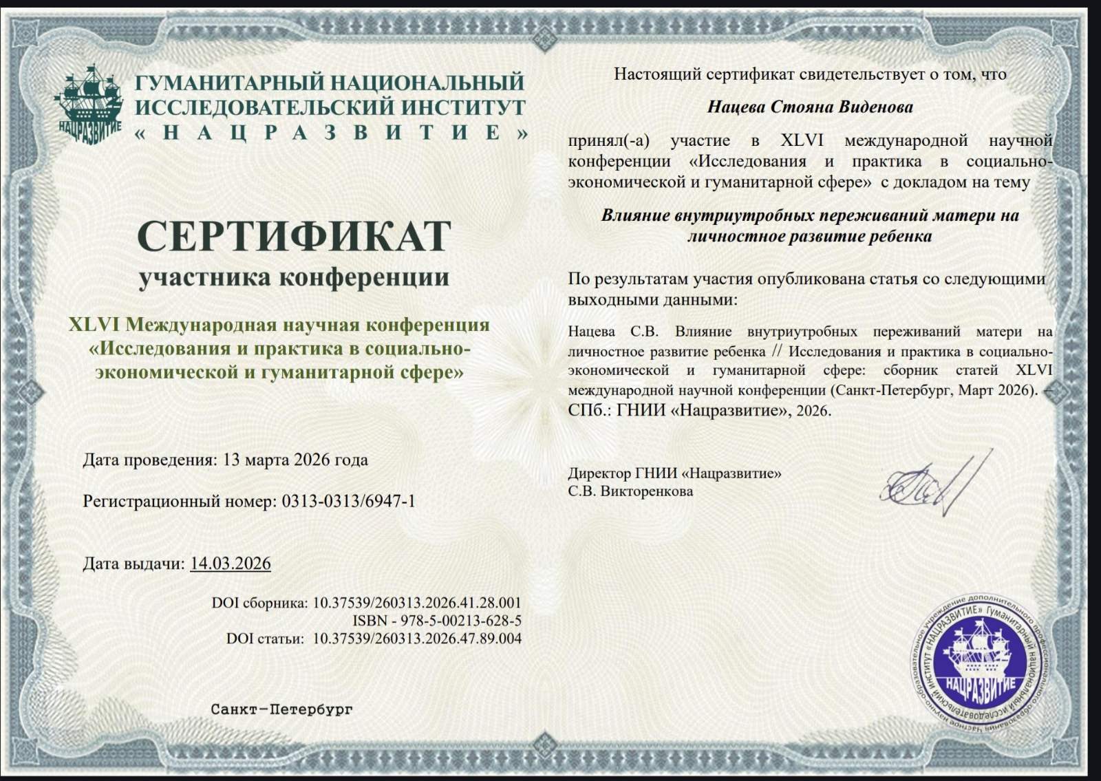 „Влияние на вътреутробните преживявания на майката върху личностното развитие на детето“